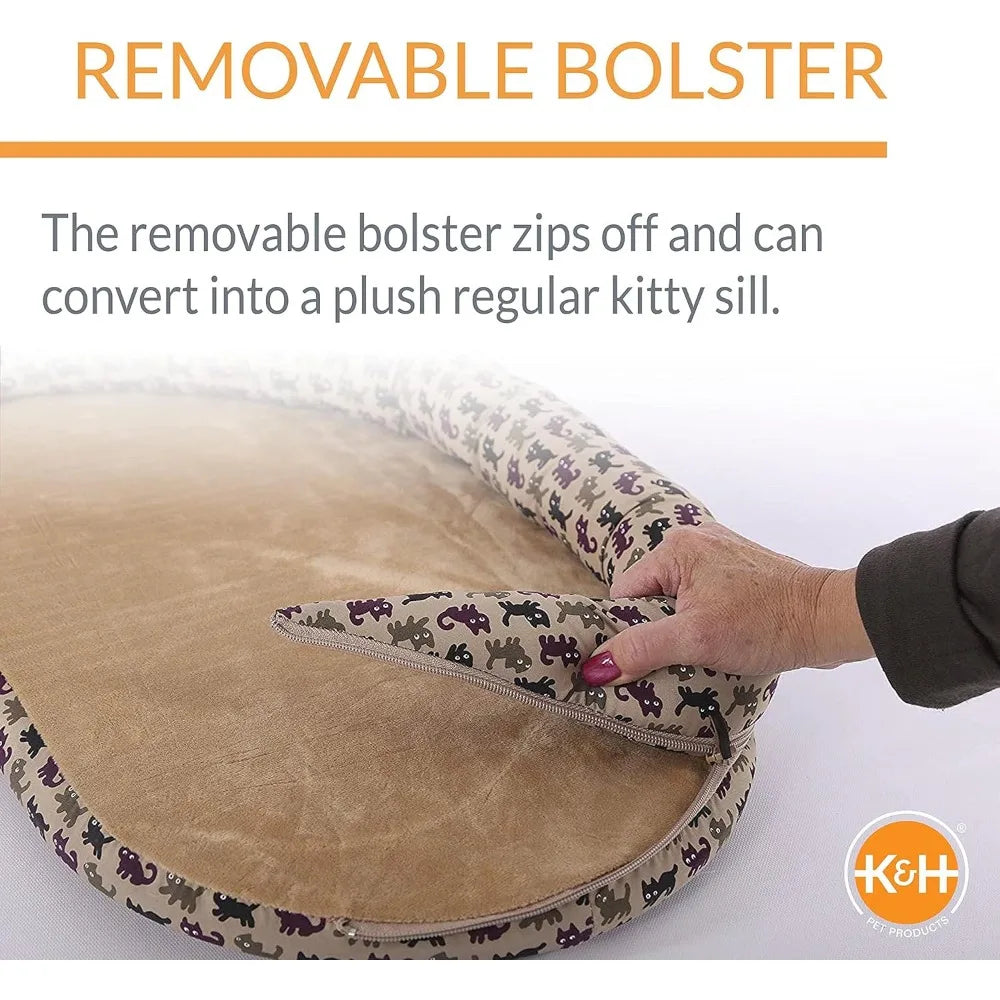 - Removable bolster: zips off to convert into a plush kitty sill, with a soft velvety microfleece surface for cozy naps.